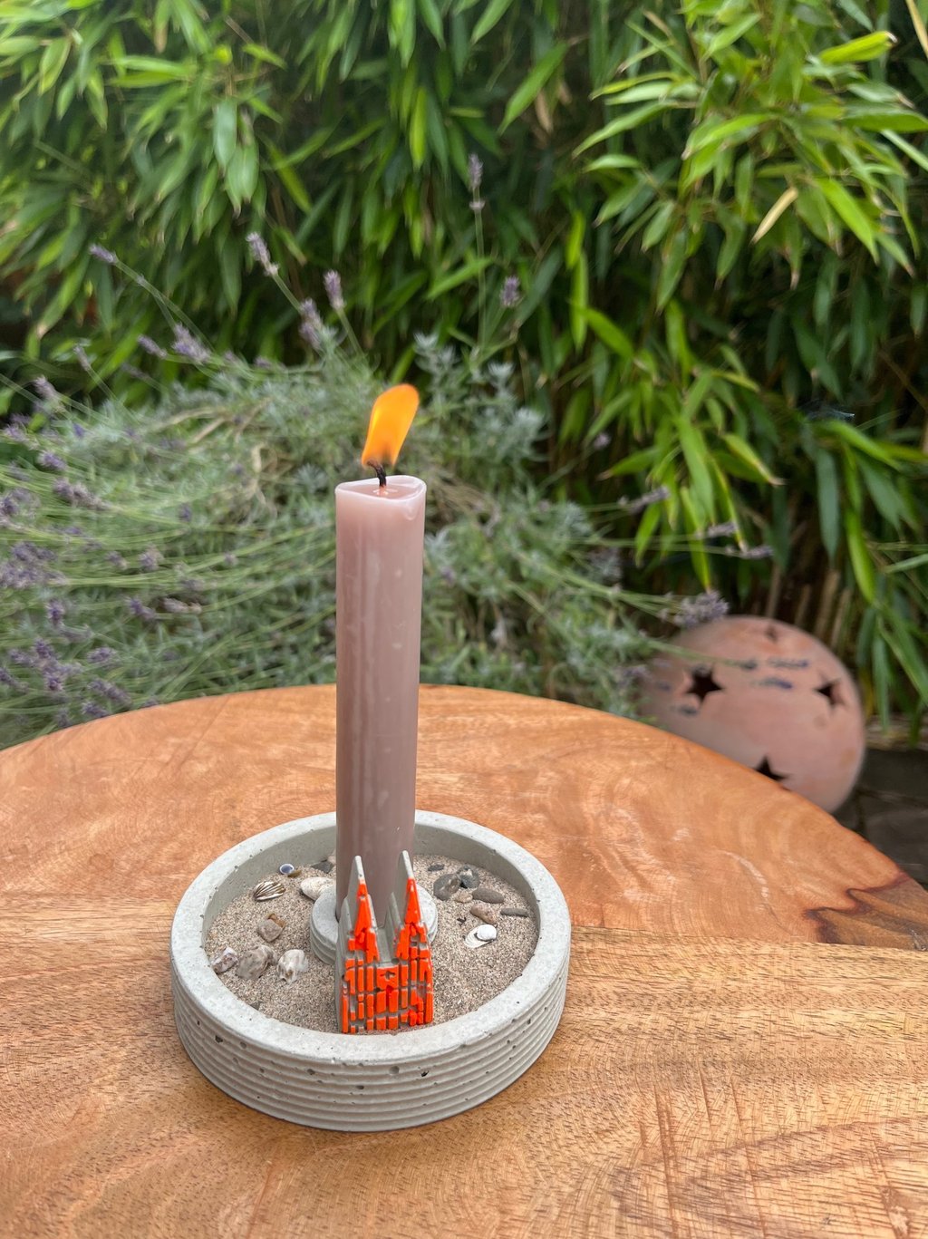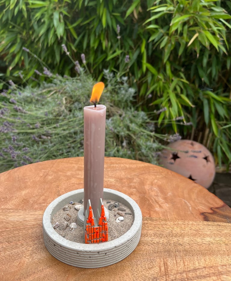 Kerzenständer mit Dömchen und echtem Rheinkiesel